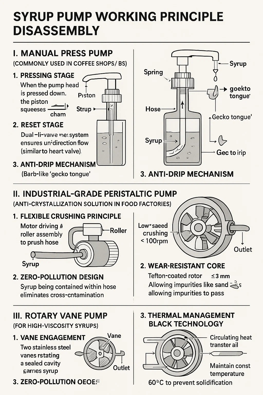 3. Mekanisme anti-drip: Struktur lidah "tokek" berduri di outlet → memastikan sisa sifar apabila aliran sirap terganggu.